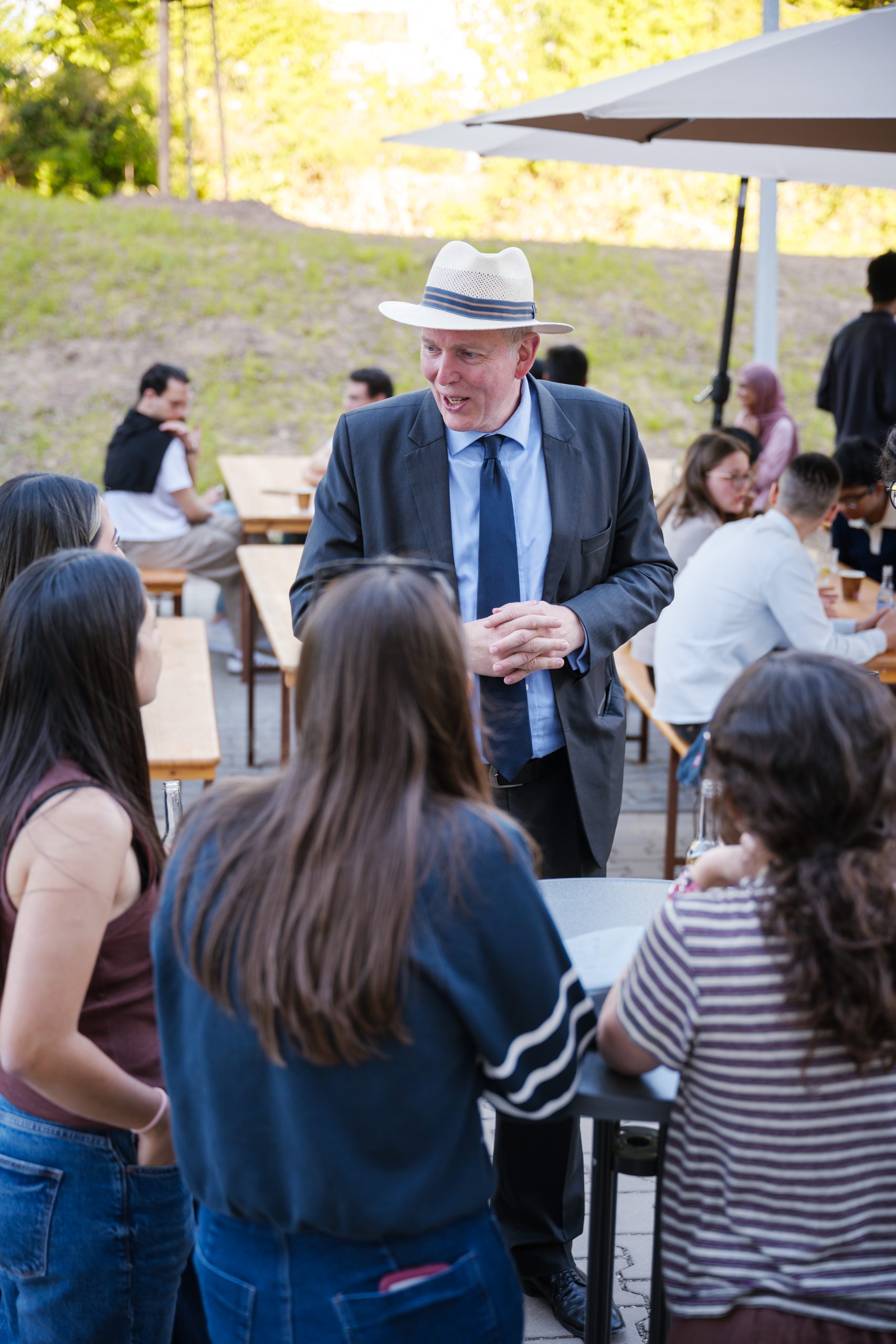 Treffpunkt war der Grillplatz zwischen Haus 1 und Haus 2, wo alle in entspannter Atmosphäre zusammenkamen. Ca. 80 Studierende, darunter viele Internationale, haben teilgenommen. Hier herrschte lebendiges Treiben bei leckeren Würstchen – die Bewohnerinnen und Bewohner konnten im Austausch ihre ersten Eindrücke vom Leben in den neuen Wohnheimen weitergeben.