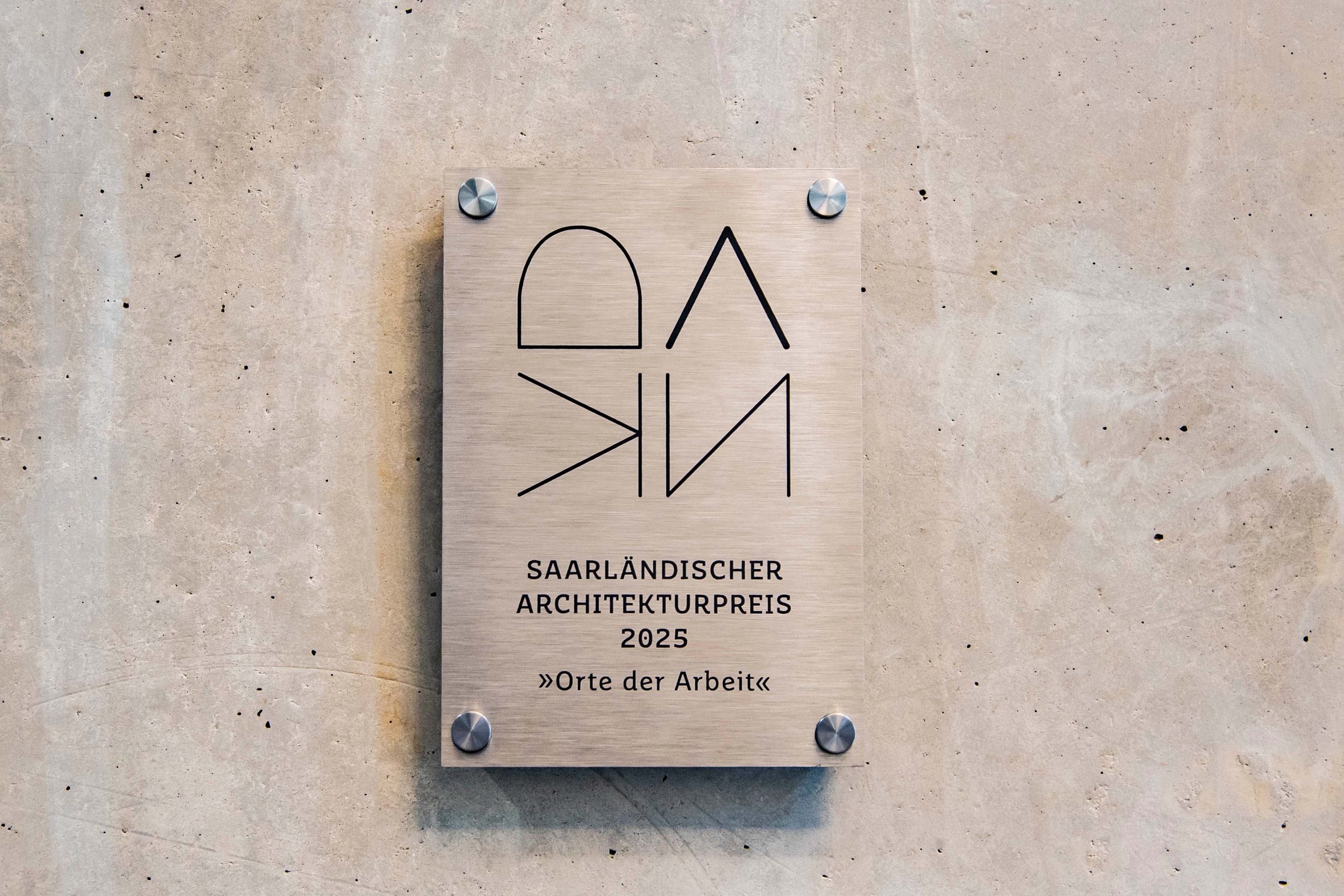 Sie sind hier: Startseite • Strukturholding Saar erhält Architekturpreis für Polizeiinspektion Saarbrücken Stadt • 14.01.26 Anbringung der Plakette