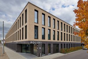 Sie sind hier: Startseite • Strukturholding Saar erhält Architekturpreis für Polizeiinspektion Saarbrücken Stadt • Gebäudefoto 1 Fassade